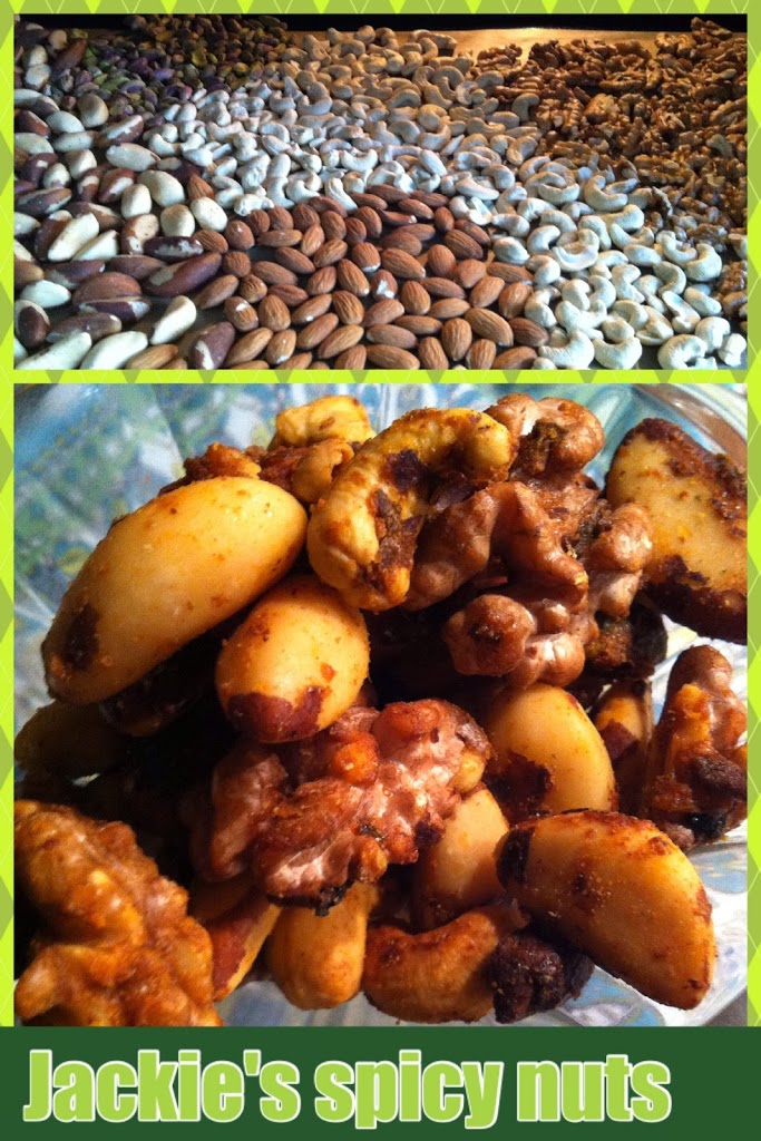 Omdat wij altijd ongebrande en ongezouten noten in huis hebben, leek het mij wel lekker om er wat pit aan te geven. Daarmee was onderstaande snack een feit geworden.